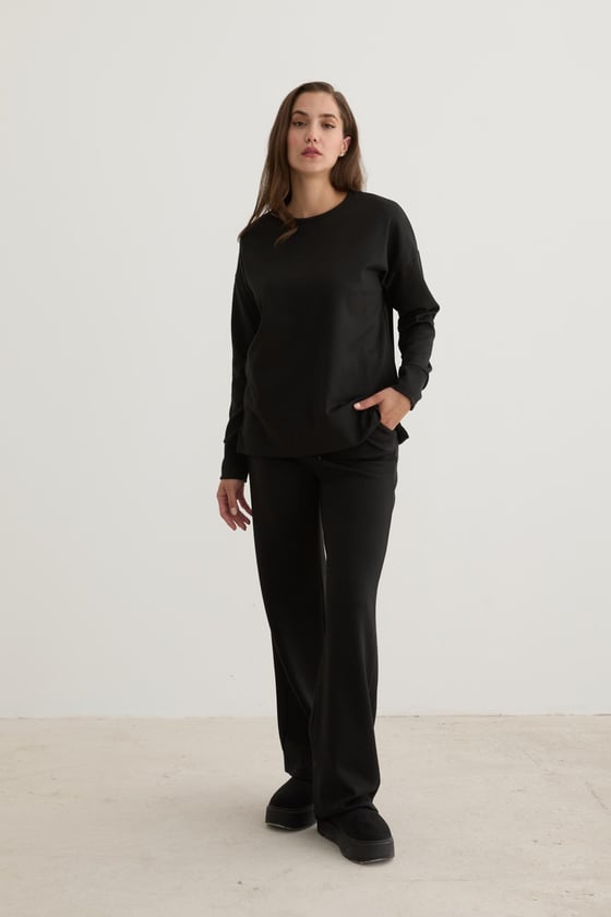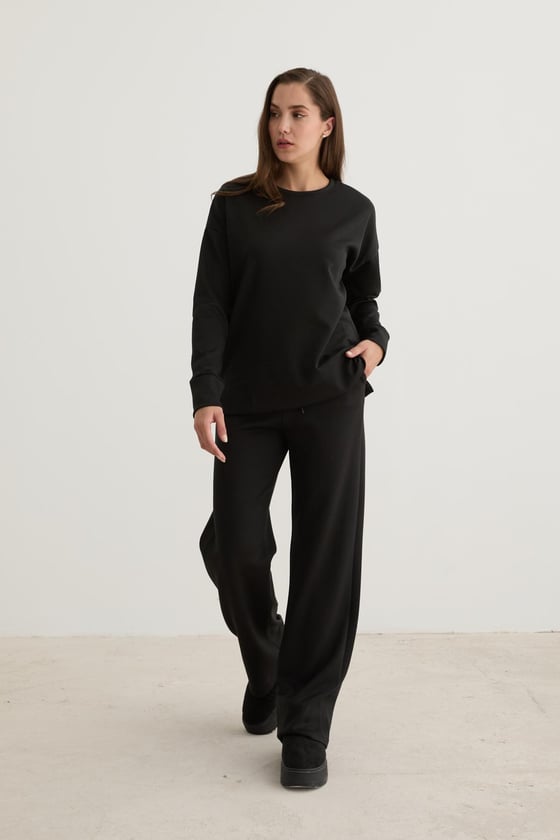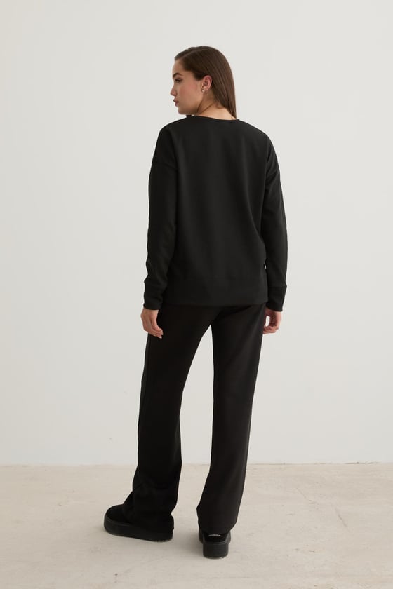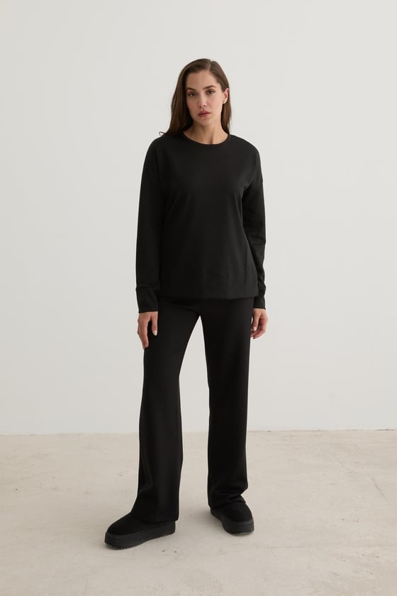 Kadın Beli Lastikli Kordon Detaylı Pantolon SİYAH (P28-3472-SİYAH-L)