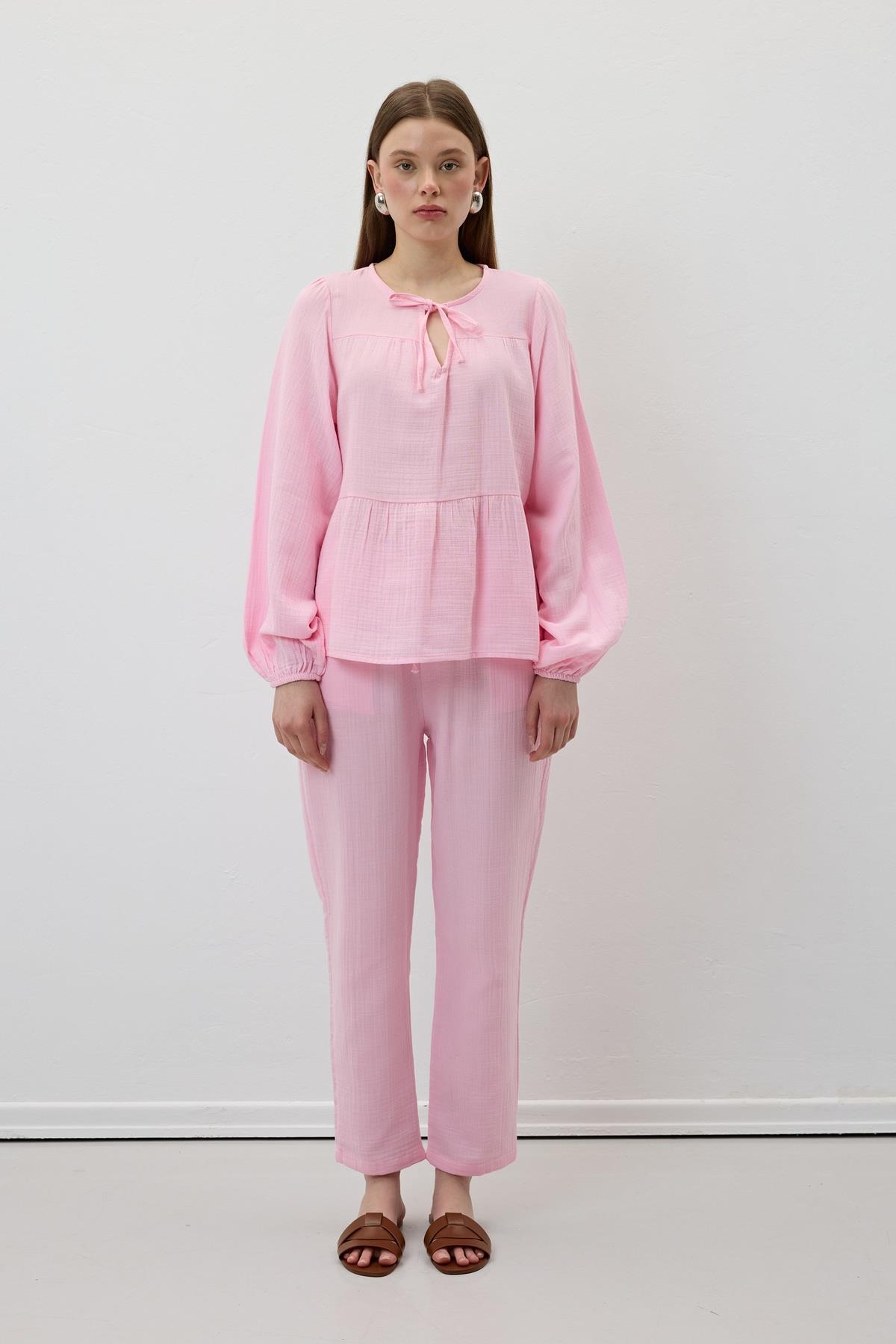 Müslin Salaş Bel Lastikli Kadın Pantolon PEMBE (P28-3435**-PEMBE-L)