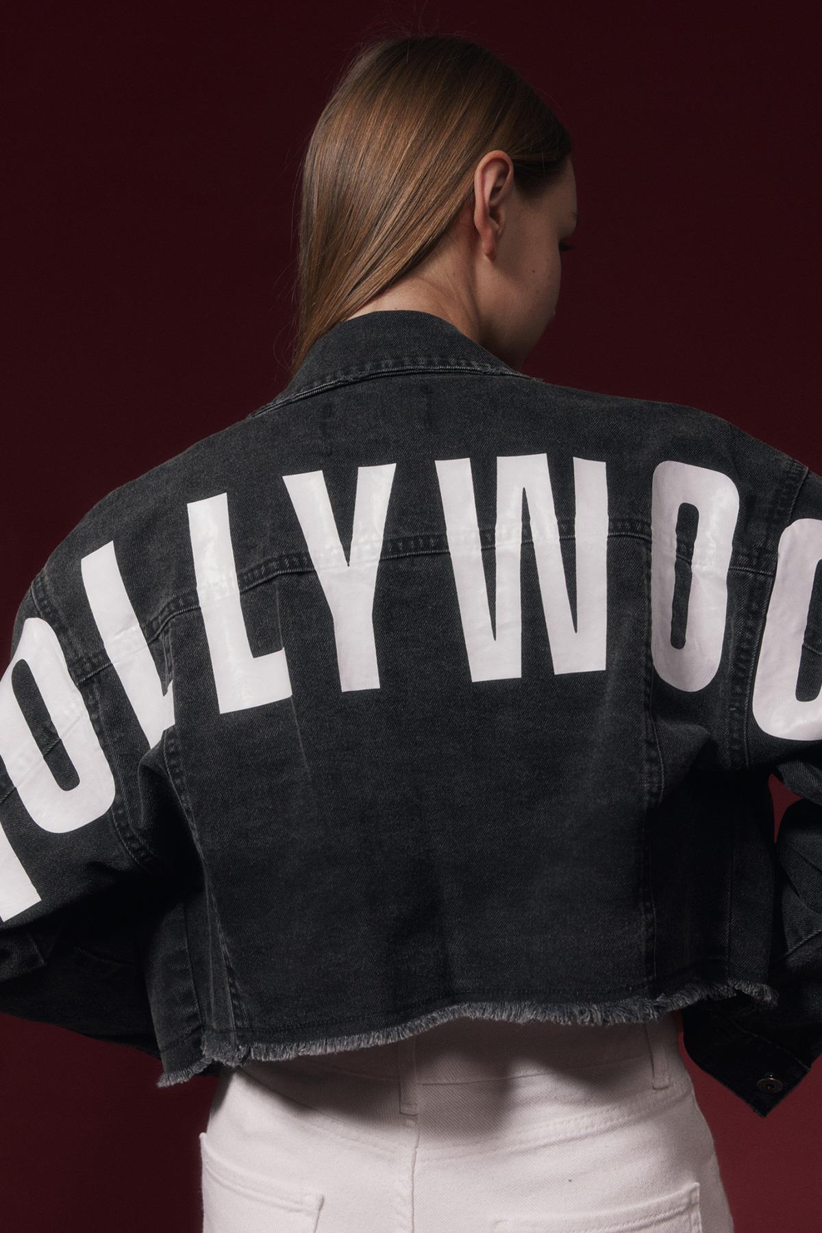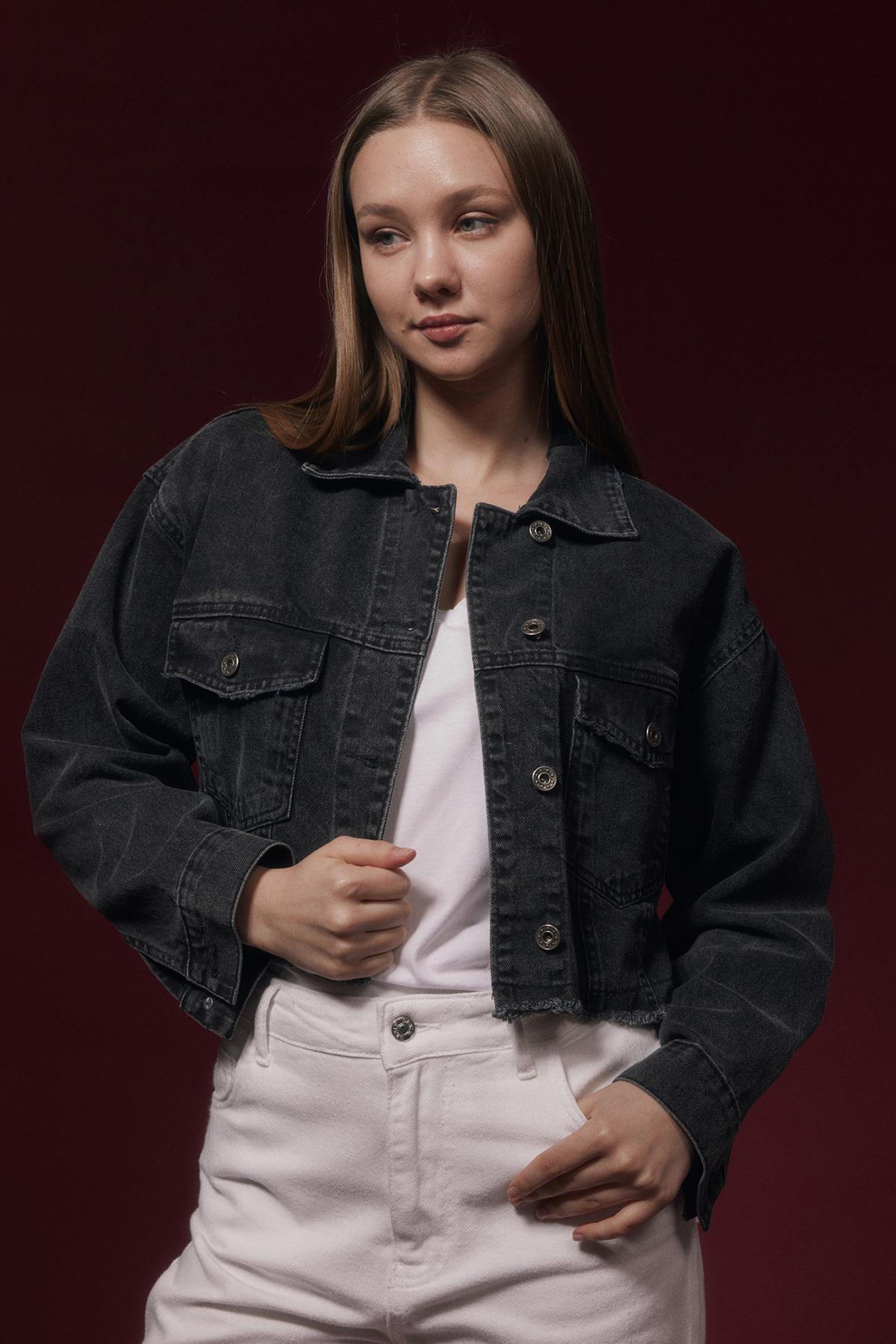 Yazı Detaylı Crop Kadın Kot Ceket BLACK (M27-5745-L-BLACK)
